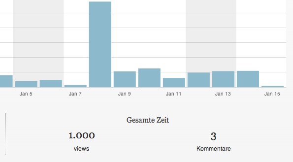 Gerade eben habe ich mir meine WordPress-Statistiken angesehen und da war es passiert. Der tausendste Besucher hat sich mein Blog angesehen!