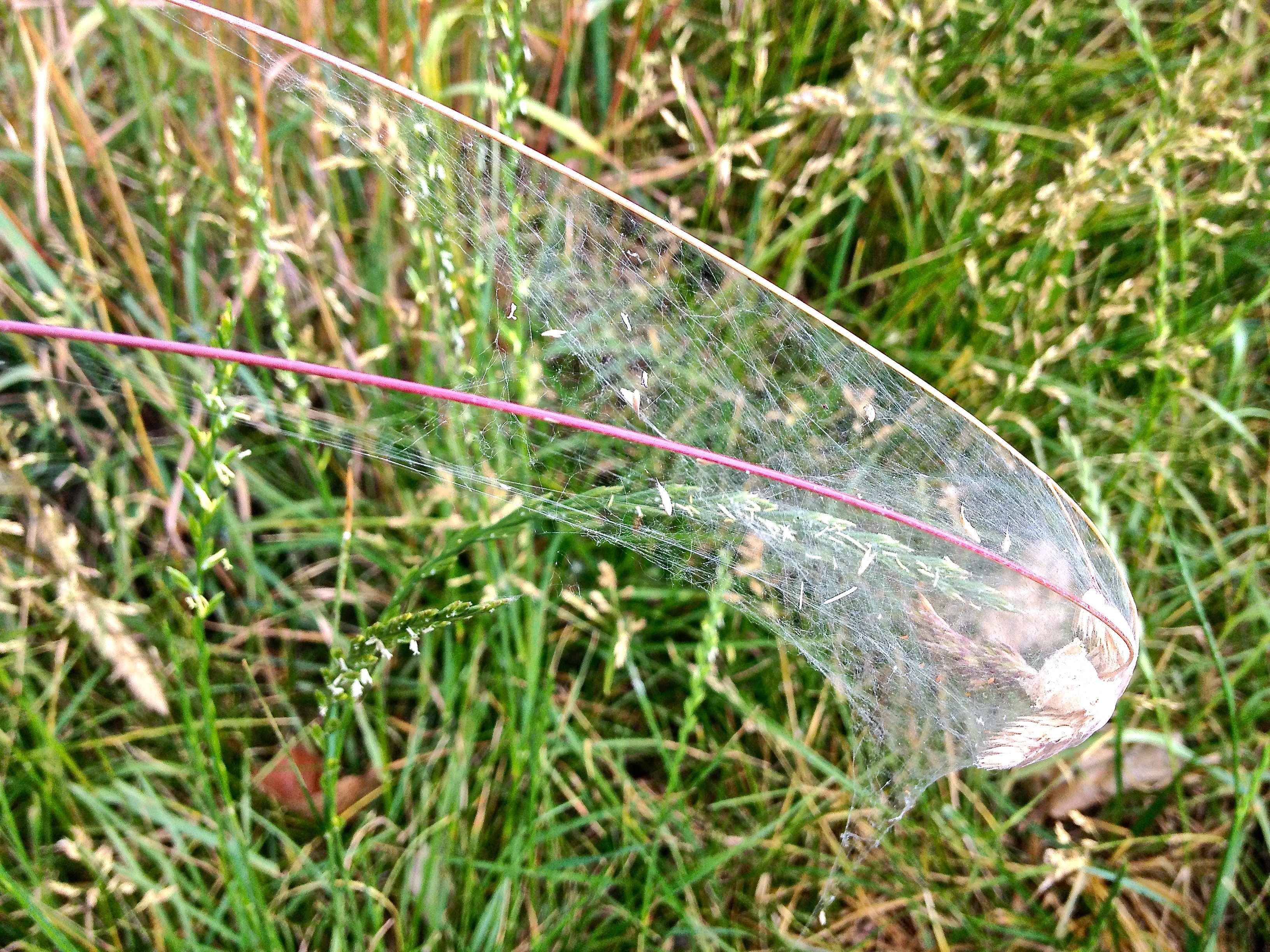 Manchmal ist es einfach zum Mäuse melken. Da entdecke ich die irrwitzigste Konstruktion, die ich je von einer Spinne gesehen habe und es ist keine Kamera, geschweige denn ein Makroobjektiv zur Hand.