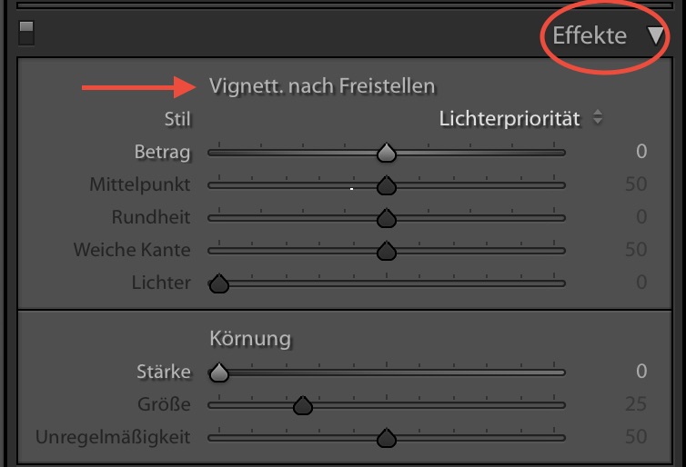 16 VignetteZu guter Letzt noch in die „Effekte“. Hier gibt es den Punkte „Vignett. nach Freistellung“, mit der Ihr Euch eine Schweizer Autobahnbenutzungserlaubnis ausdrucken könnt Euer Bild mit einer Vignette (Randabschattung) versehen könnt. Nach rechts in weiß für den absolut grausigen 70er-Look und nach links in schwarz, was – gezielt und dezent eingesetzt – den Blick des Betrachters auf das Hauptmotiv zieht, z. B. bei Portraits. Bedient Euch auch ruhig der weiteren vorhandenen Regler um die Vignette nach eigenem Geschmack zu formen. Hierfür gibt es auch noch mal ein (etwas übertriebenes) Beispiel, das Euch die Anwendung dieses Werkzeugs verdeutlicht.