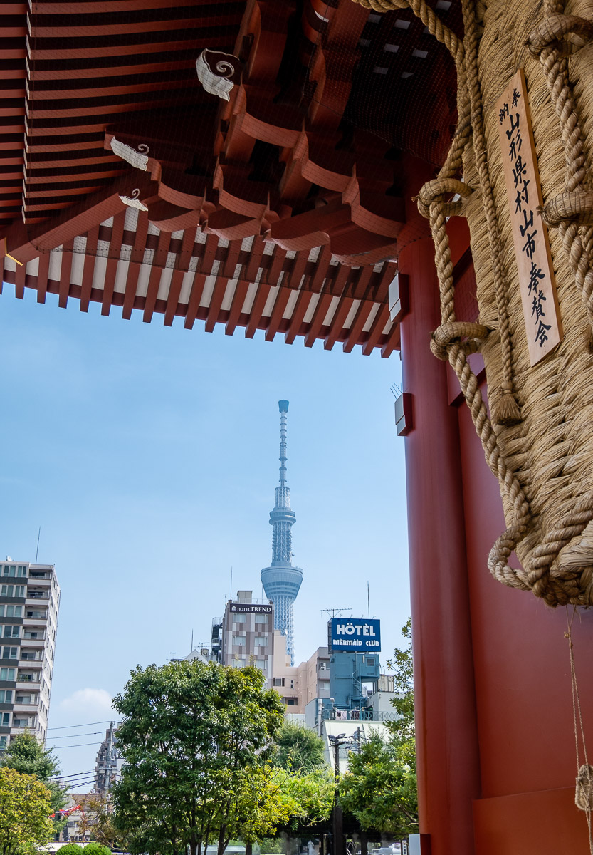 Nun aber zurück zum Thema. Wir schreiben immer noch den 02. September 2019, meinen Ankunftstag in der Megacity und nachdem ich mich ausführlich im Tempelbezirk von Asakusa umgesehen hatte, fasste ich mein nächstes Ziel ins Auge, den Tokyo Skytree. Dieser Fernseh- und Rundfunksendeturm ist das zweithöchste Gebäude der Welt und bietet von seinen beiden Aussichtsdecks auf 350m und 450m einen wahnsinnigen Rundblick auf die Stadt und, bei entsprechender Wetterlage weit ins Land bis zum Mount Fuji. Dieser Blick blieb mir leider verwehrt, da es – wahrscheinlich aufgrund der hohen Luftfeuchtigkeit – in der Ferne ziemlich diesig war. Selbst das „Ende“ der Stadt war, je nach Himmelsrichtung schon teilweise sehr verschwommen aber dank RAW-Fotos und Lightroom konnte ich noch einiges herausholen, was für mich den happigen Eintrittspreis von 3.100 Yen (ca. 26€) rechtfertigt. Schließlich war das vermutlich mein erster und einziger Besuch in dieser Stadt.